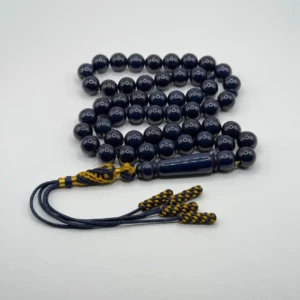 مسبحة باكالايت كحلية – 51 حبّة – 10 مم مع كركوشة كحلية و ذهبي