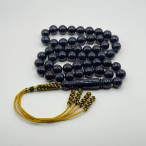 مسبحة باكالايت كحلية فخمة – 51 حبّة – 10 مم مع كركوش ذهبي و كحلي