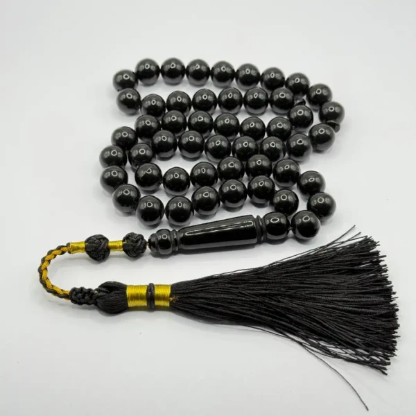 مسبحة باكالايت سوداء ملكي بـ – 51 حبّة – 10 مم مع طربوش أسود و ذهبي
