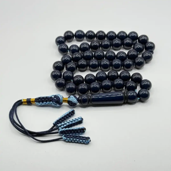 مسبحة باكالايت كحلية فخمة – 51 حبّة – 10 مم مع كركوش أزرق و كحلي